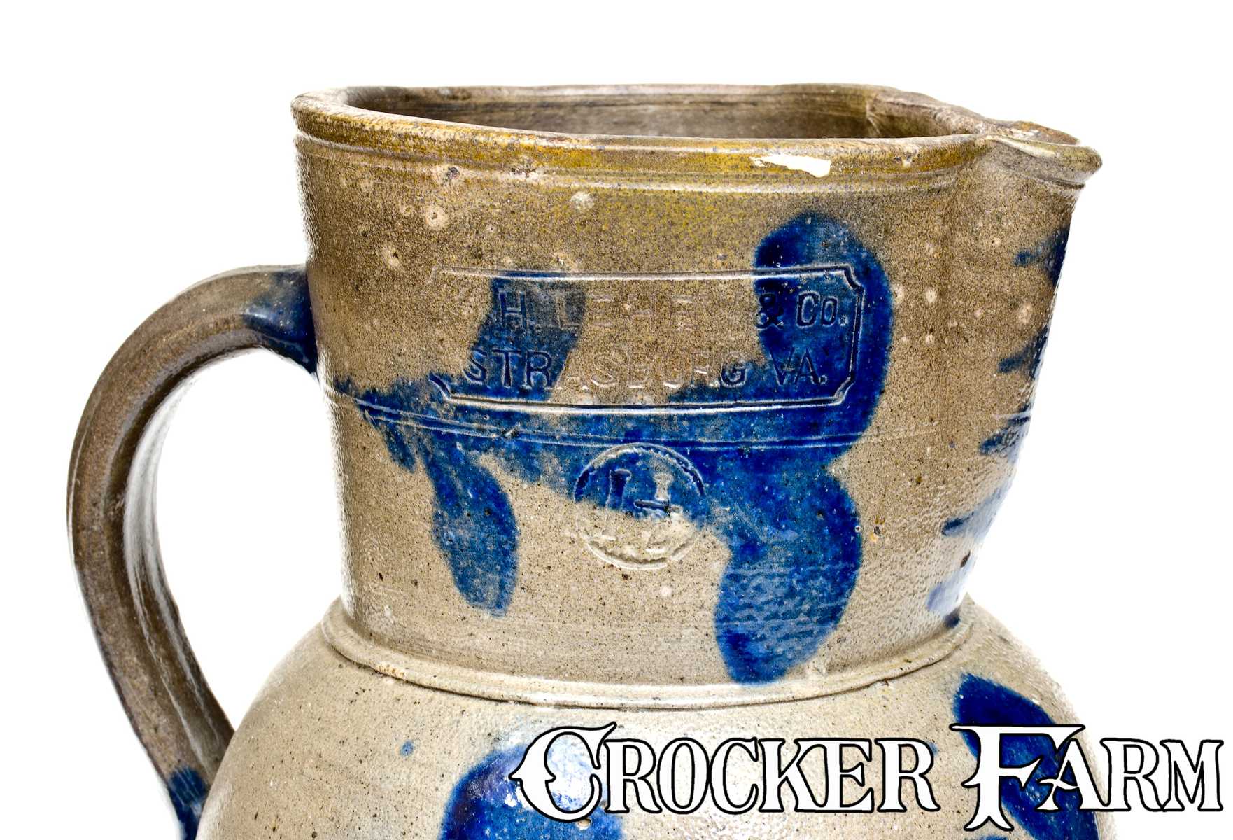 Rare 1 1/2 Gal. W. H. LEHEW & CO. / STRASBURG, VA Stoneware Pitcher