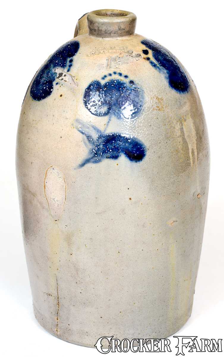 JOHN BELL / WAYNESBORO, PA Stoneware Jug w/ Cobalt Floral Decoration