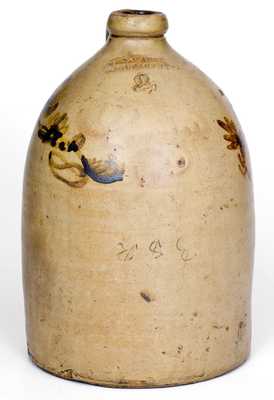Unusual WM. E. WARNER / MANUFACTORY (West Troy, NY) Stoneware Jug w/ Ochre