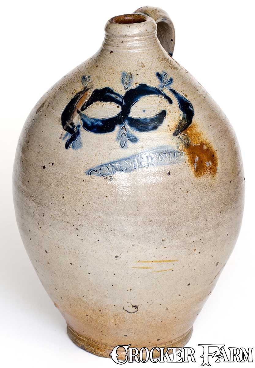 COMMERAW'S Stoneware Jug by African-American New York City Potter, Thomas Commeraw