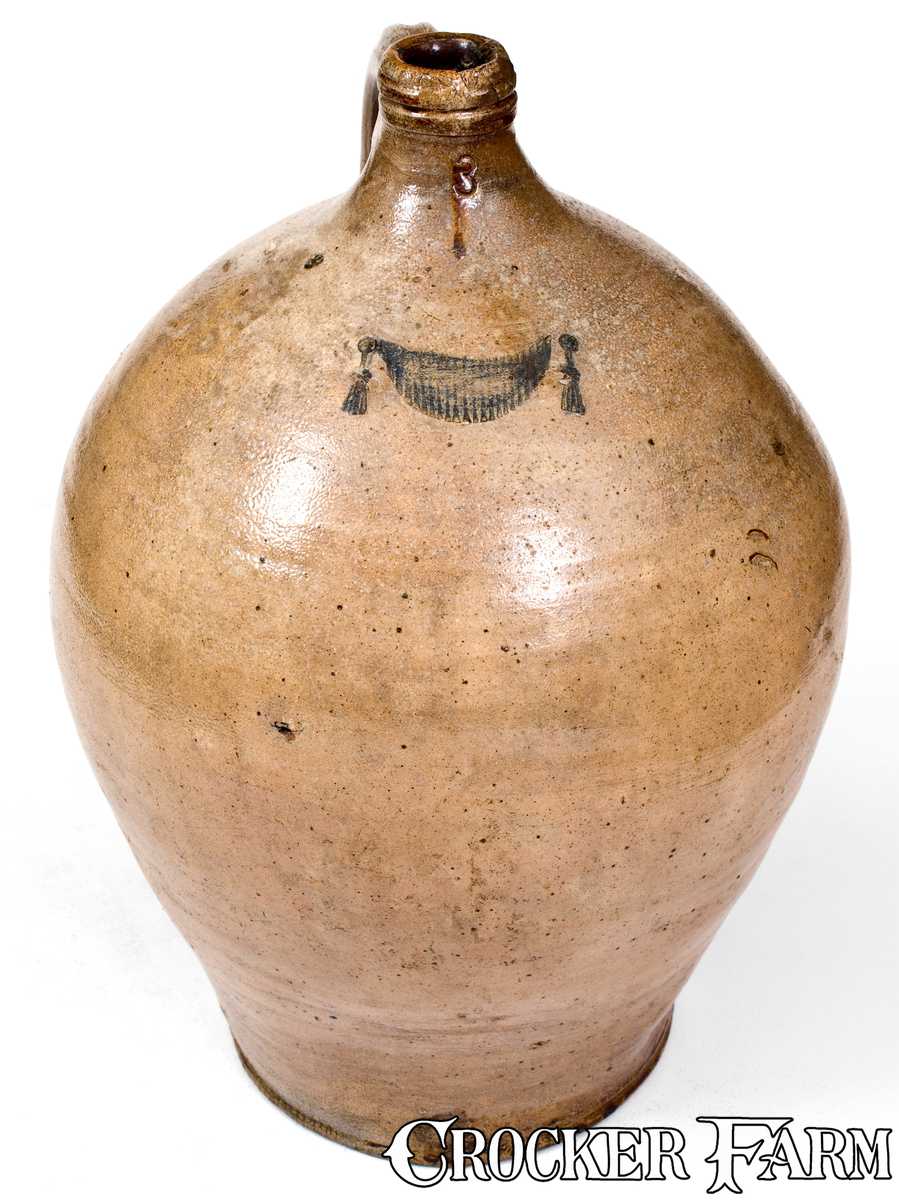 Fine Early Boston Area Stoneware Jug w/ Impressed Drapery Motif, att. Frederick Carpenter