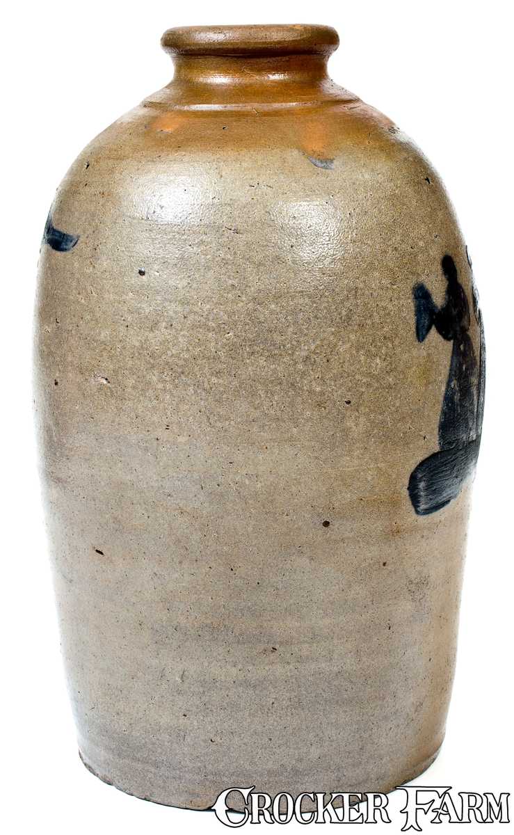 Very Rare One-Gallon Stoneware Jug w/ People Decoration, Morgantown, WV origin
