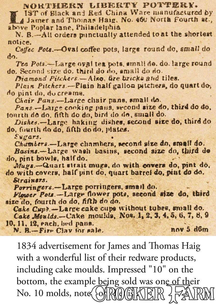 Extremely Rare Glazed Redware Food Mold, Stamped "J. & T. HAIG," Philadelphia, Pennsylvania