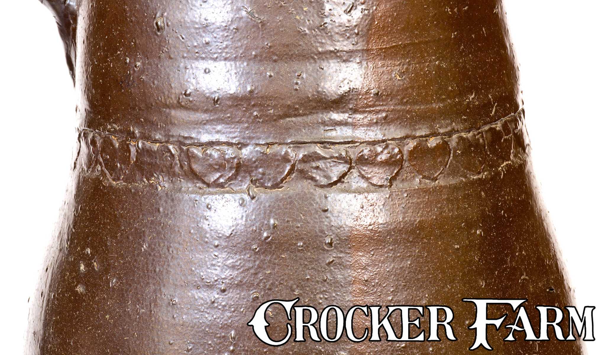 Very Rare Oversized Stoneware Pitcher with Coggled Hearts Decoration, Midwestern or Southern