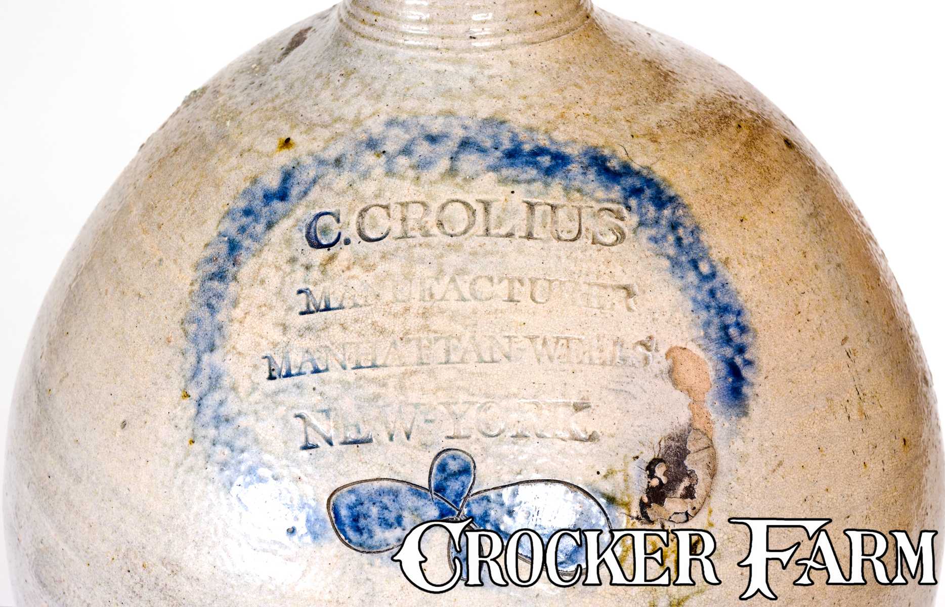 Fine 2 Gal. C. CROLIUS Stoneware Jug w/ Incised Decoration, Manhattan, New York