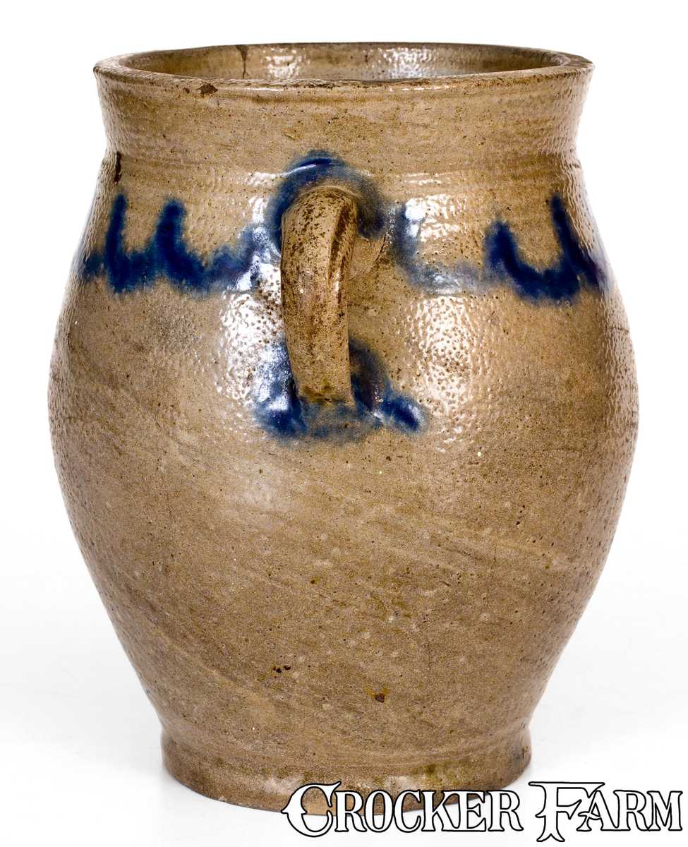 Fine Small Vertical-Handled Stoneware Jar, Manhattan, circa 1790