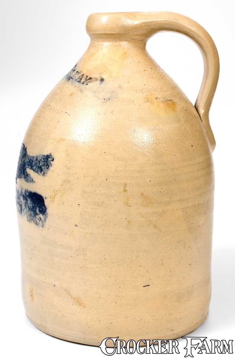 NORTH BAY, New York Stoneware Jug w/ Stenciled Cobalt Bird Decoration (John C. Waelde)