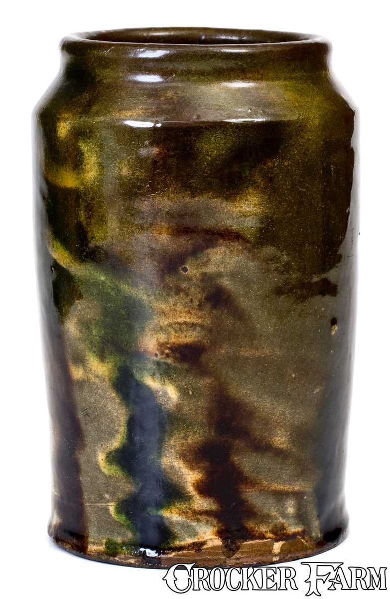 Unusual Redware Jar with Marbled Glaze, Mid-Atlantic or Southern, possibly Hagerstown, MD