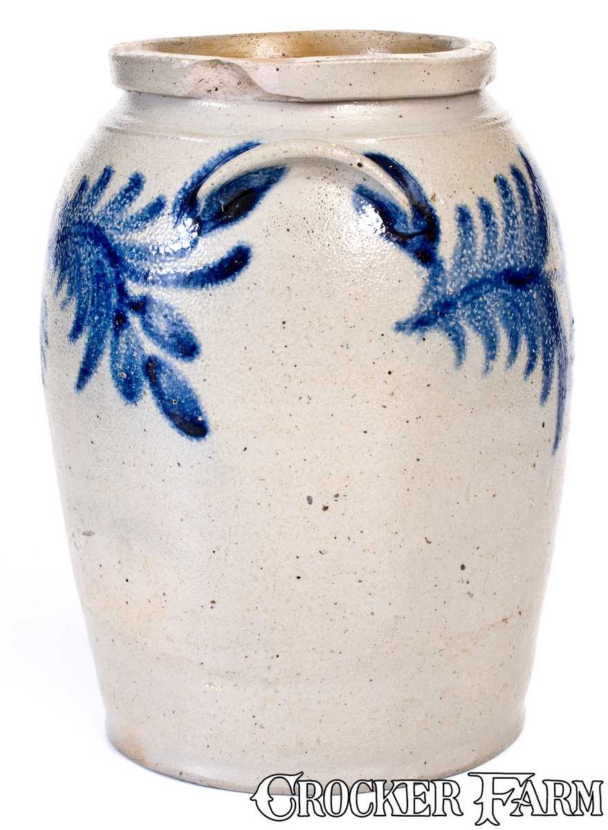 One-Gallon Baltimore Stoneware Jar with Cobalt Floral Decoration, c1840