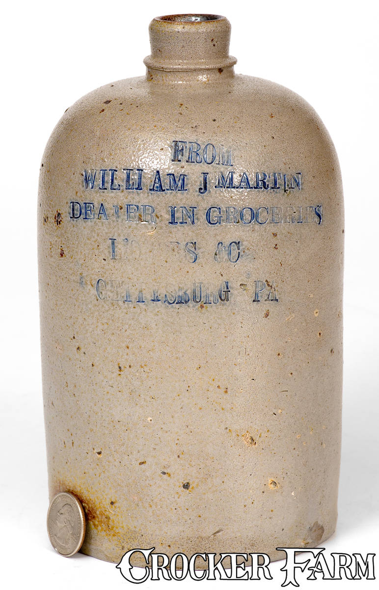 Very Rare GETTYSBURG, PA Stoneware Advertising Jug, made in Baltimore