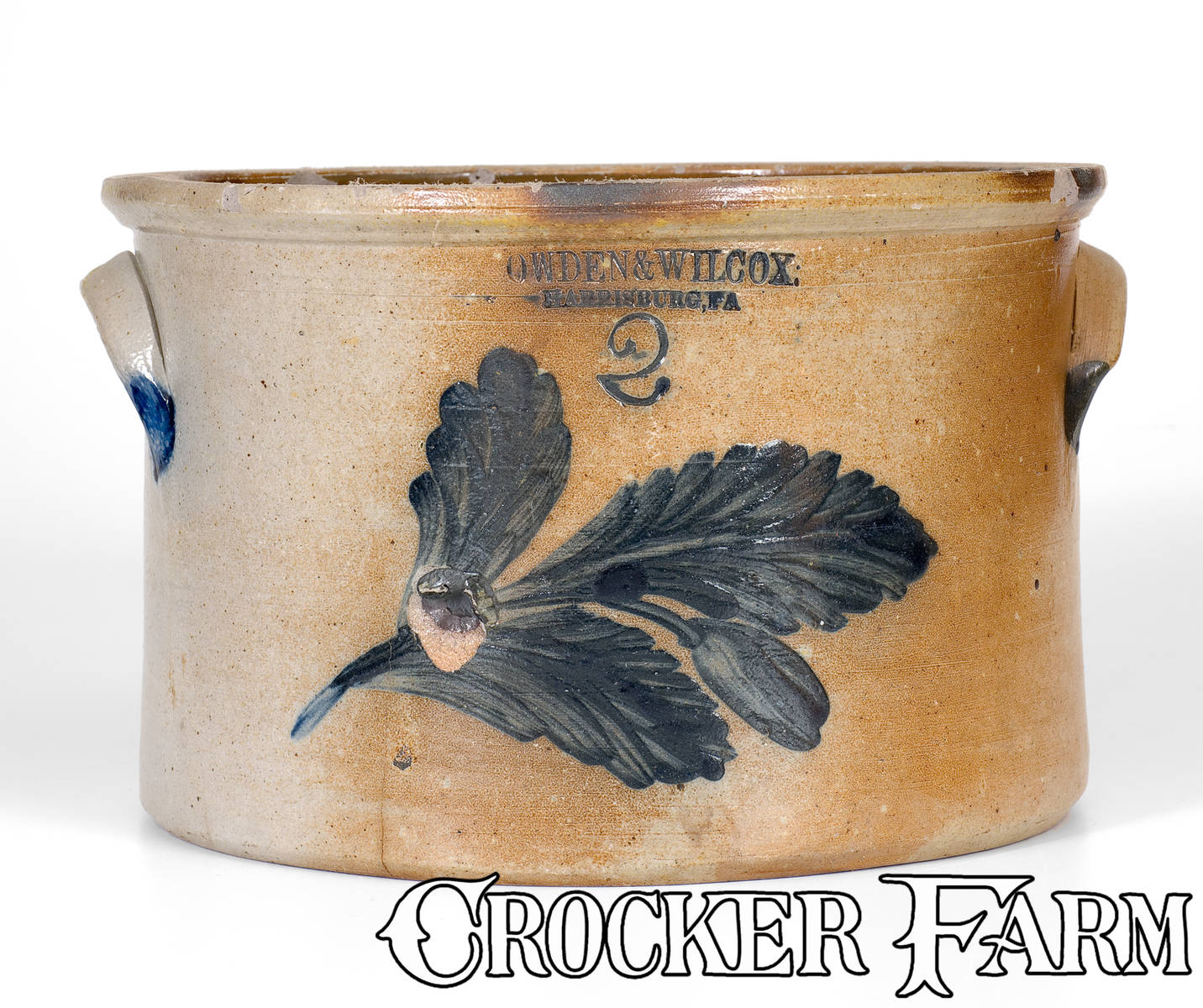 COWDEN & WILCOX / HARRISBURG, PA Stoneware Cake Crock w/ Leaf Decoration