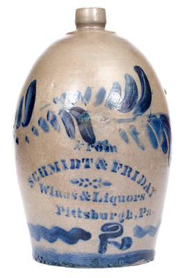 "From SCHMIDT & FRIDAY / PITTSBURGH, PA" Stoneware Advertising Jug