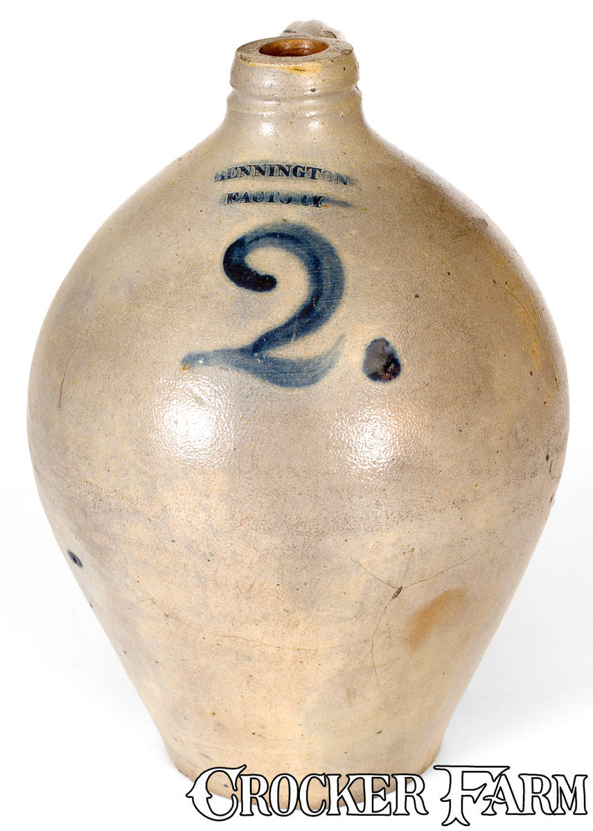 Rare BENNINGTON / FACTORY Cobalt-Decorated Stoneware Jug (Capt. John Norton, Bennington, VT)