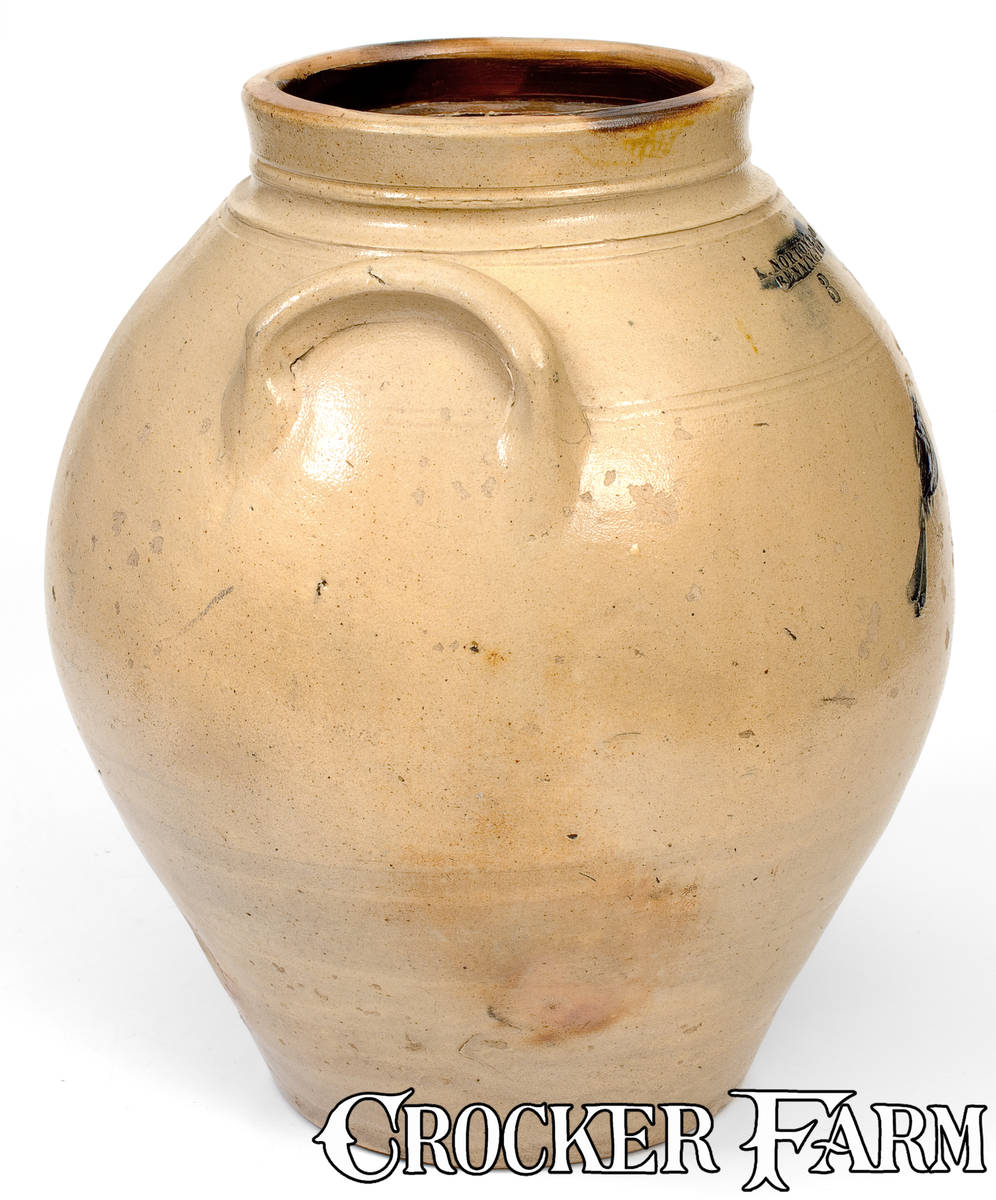 Rare L. NORTON & SON / BENNINGTON, VT Stoneware Jar w/ Incised Bird and Star Motifs, c1833-41