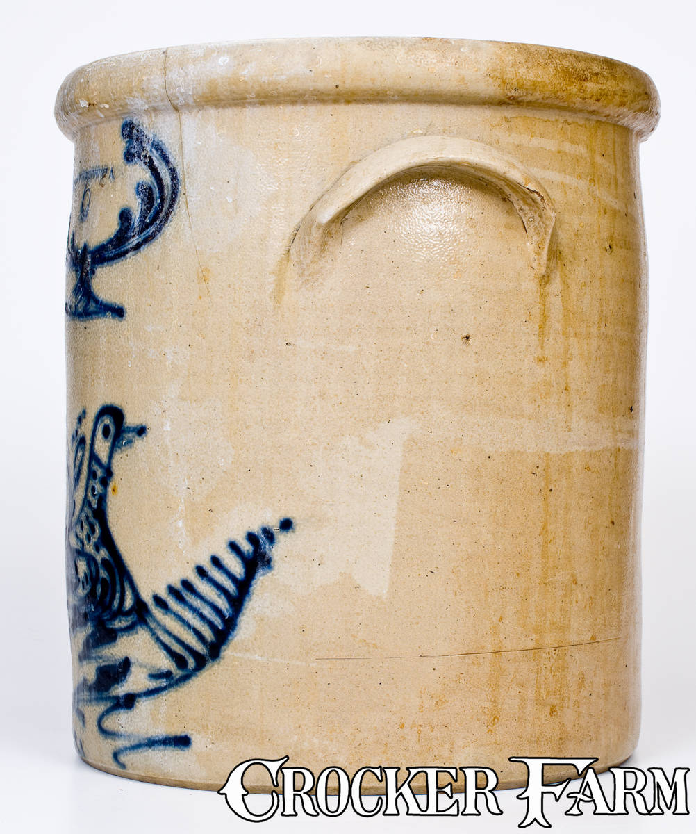 6 Gal. WHITES UTICA Stoneware Crock w/ Elaborate Slip-Trailed Bird Decoration