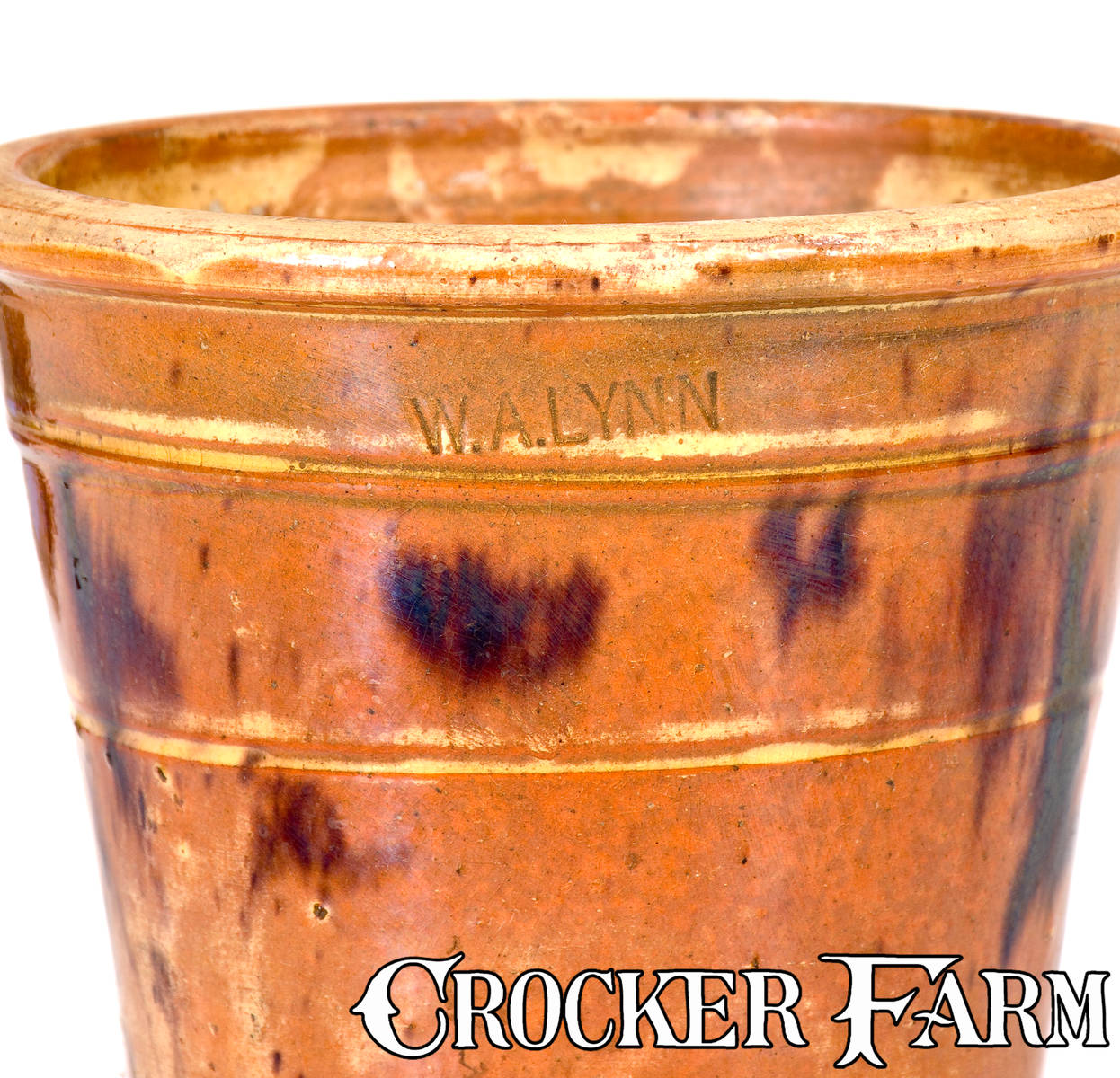 Rare W. A. LYNN, Thurmont, MD Redware Flowerpot w/ Manganese Decoration