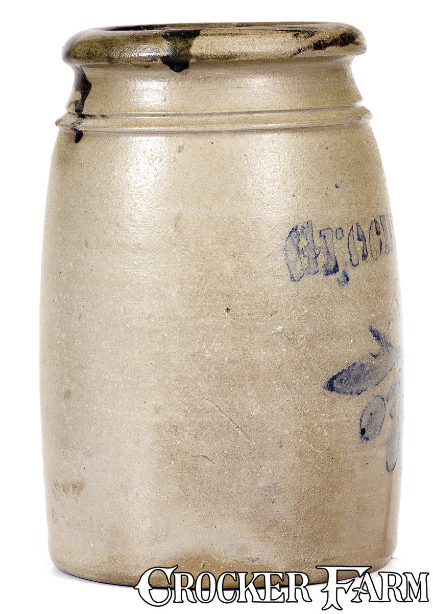 Greensboro, PA Stoneware Canning Jar w/ Stenciled Cherries Decoration