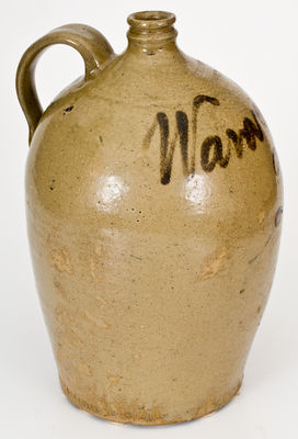 CHANDLER / MAKer Stoneware Jug w/ Iron Slip Inscription "Waranted / 2," Thomas Chandler, Edgefield District, SC
