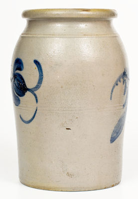 Fine Western PA Stoneware Jar w/ Two-Sided Freehand Decoration