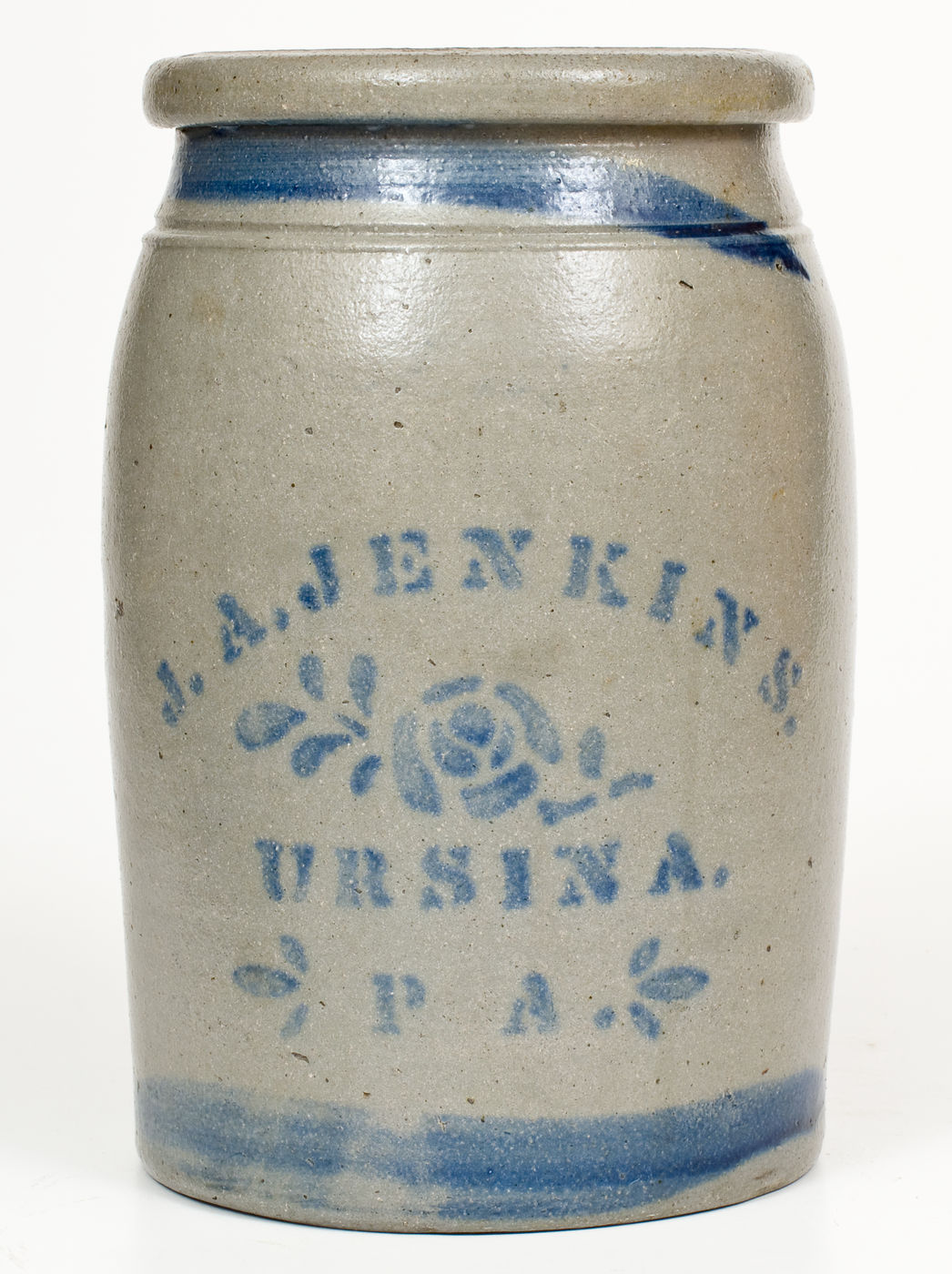 Western PA Stoneware Jar with URSINA, PA Stenciled Advertising