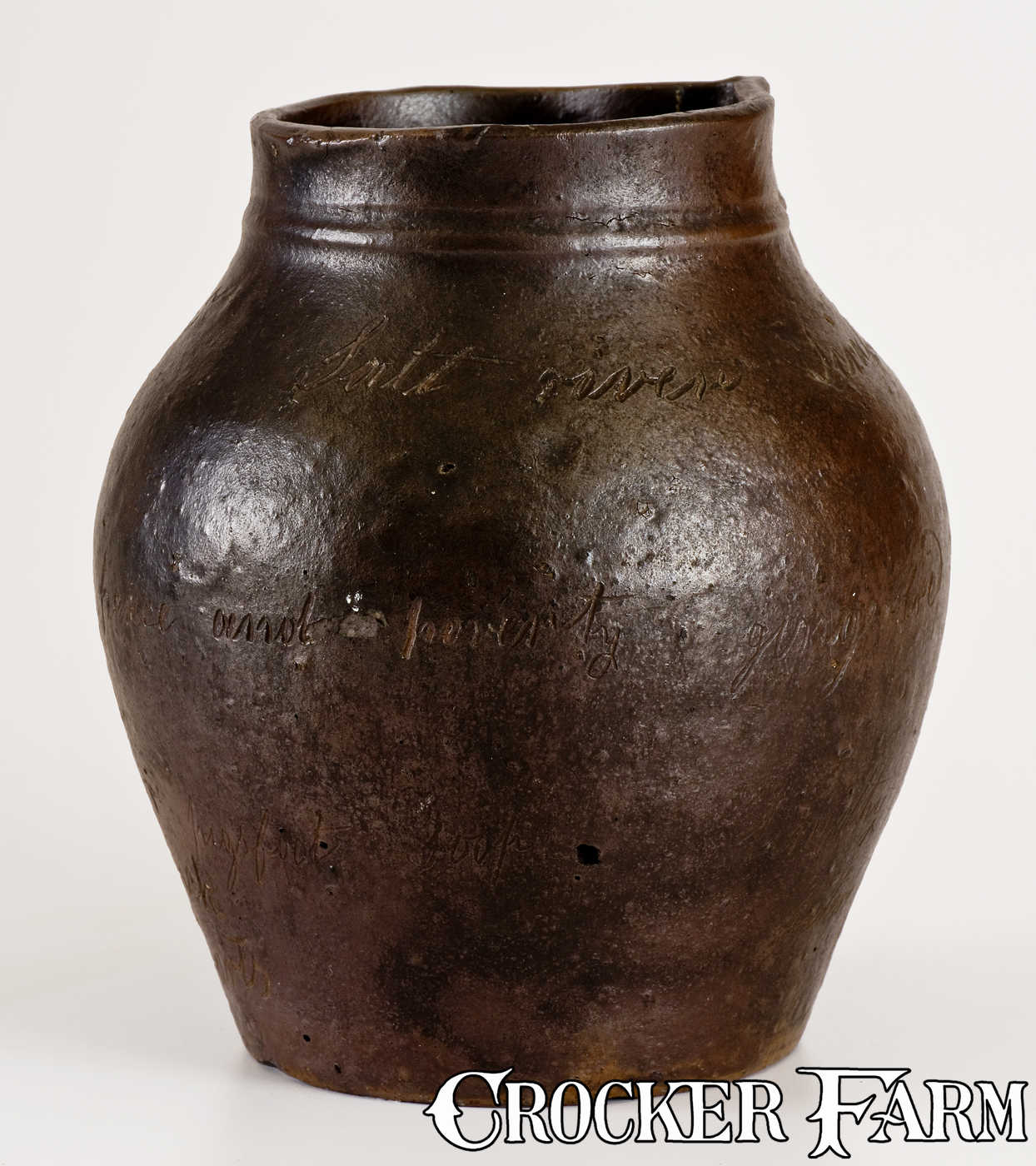 Rare Canfield, Ohio 1845 Stoneware Jar w/ Multiple Incised Slogans
