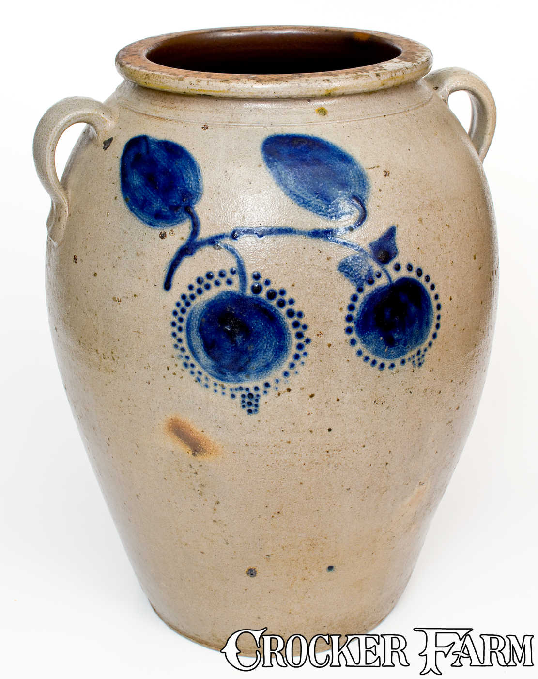 Fine Ten-Gallon Ohio Stoneware Jar w/ Cobalt Fruit Decoration, circa 1870