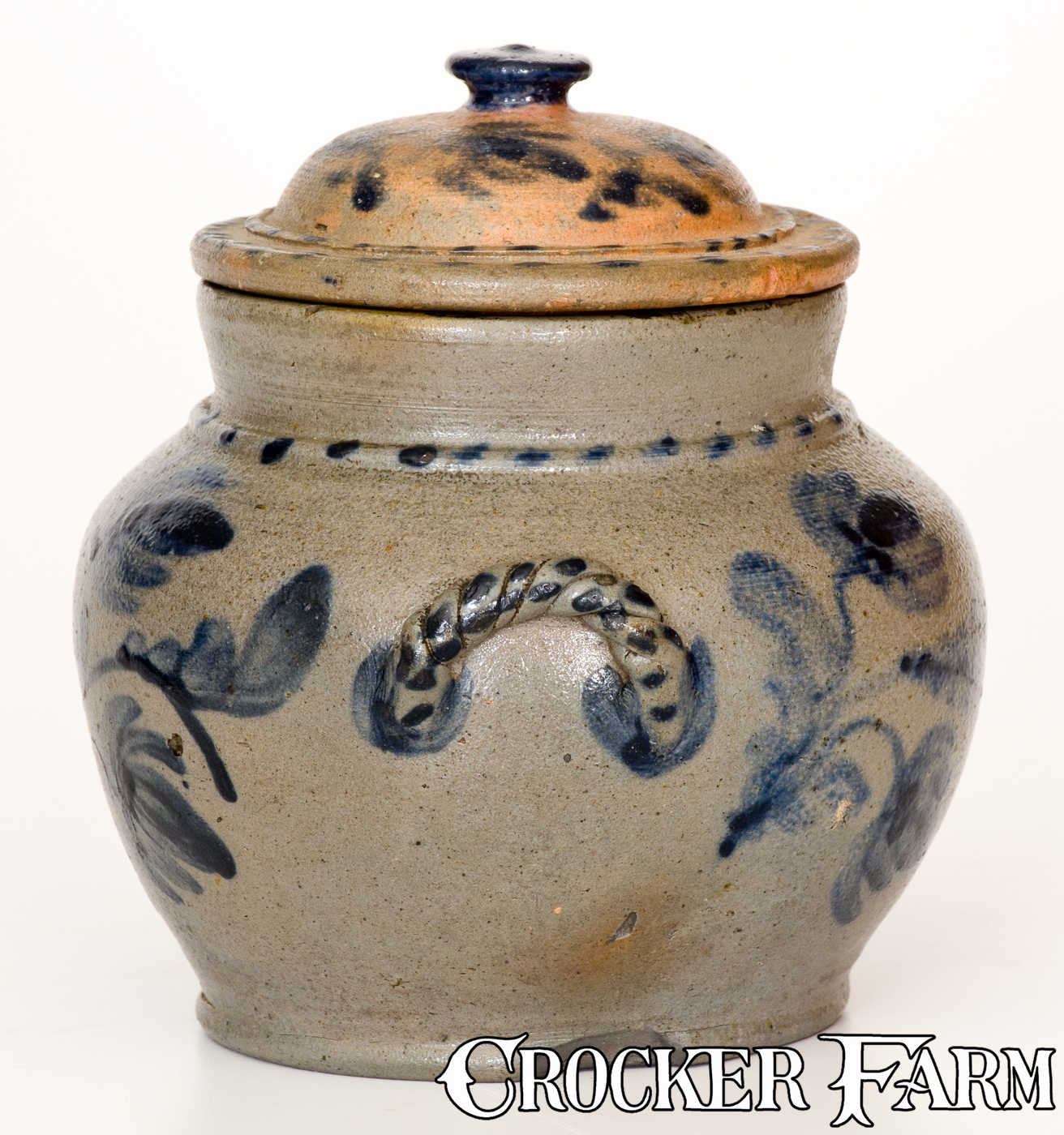 Outstanding Huntingdon County, PA Stoneware Lidded Sugar Bowl with Elaborate Decoration