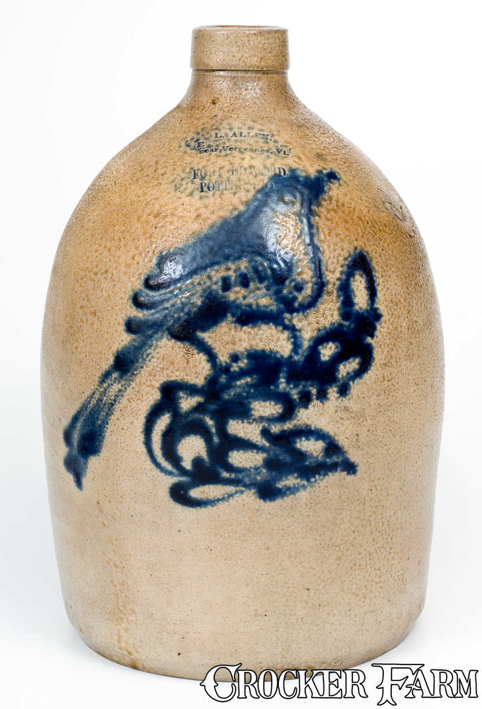 Rare Vergennes, VT Stoneware Advertising Bird Jug by Fort Edward Pottery Co.