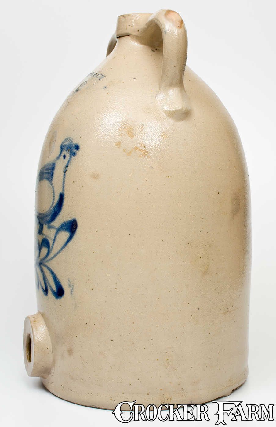 Six-Gallon SATTERLEE & MORY / FORT EDWARD, N.Y. Stoneware Water Cooler w/ Bird Decoration