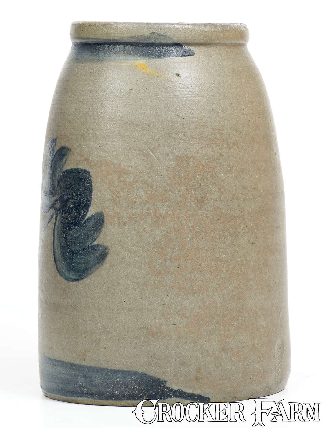 Large-Sized Western PA Stoneware Canning Jar w/ Cobalt Floral Decoration