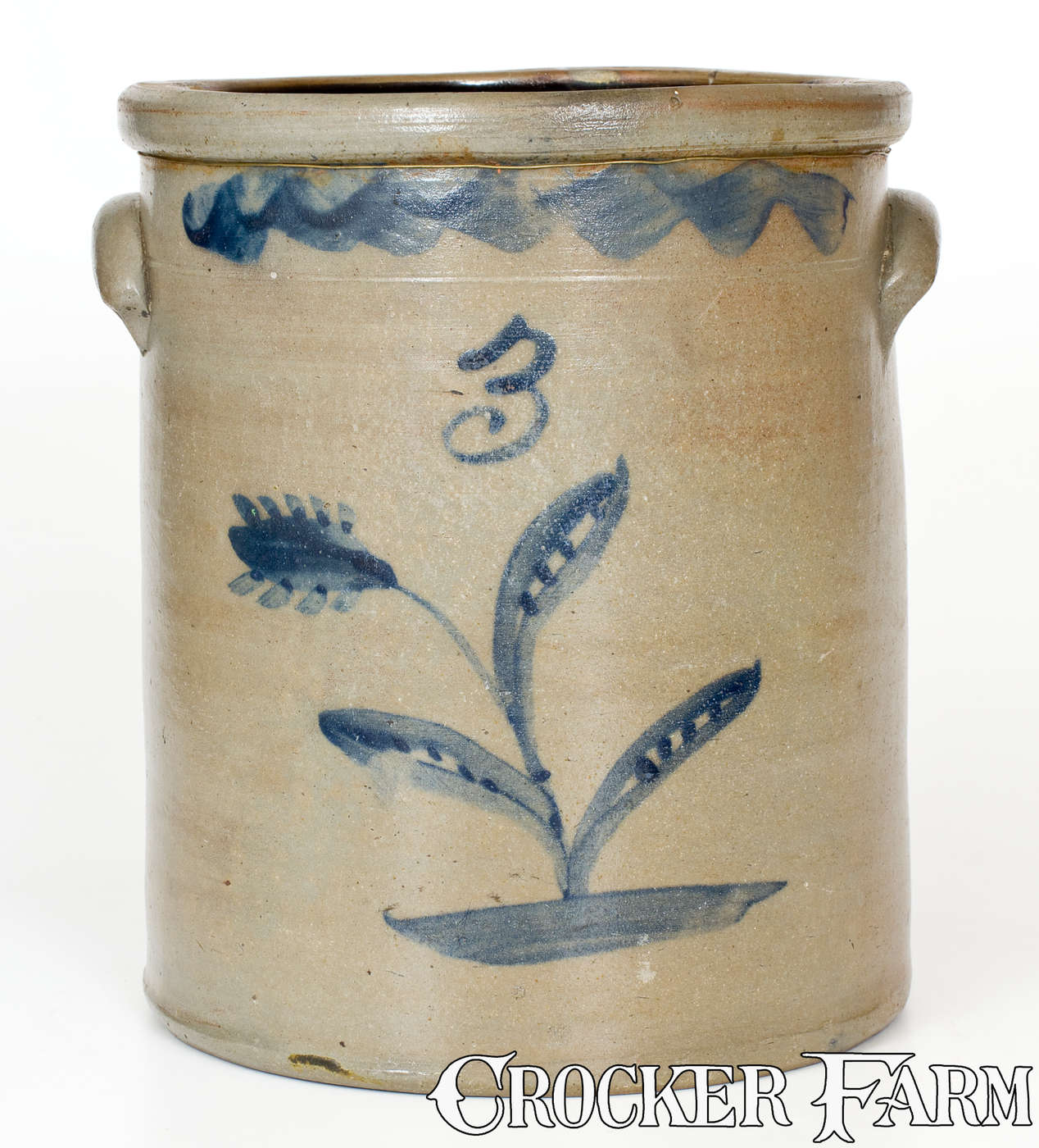 Three-Gallon Stoneware Crock attrib. S. A. Colvin & Sons, Jane Lew, WV, circa 1885