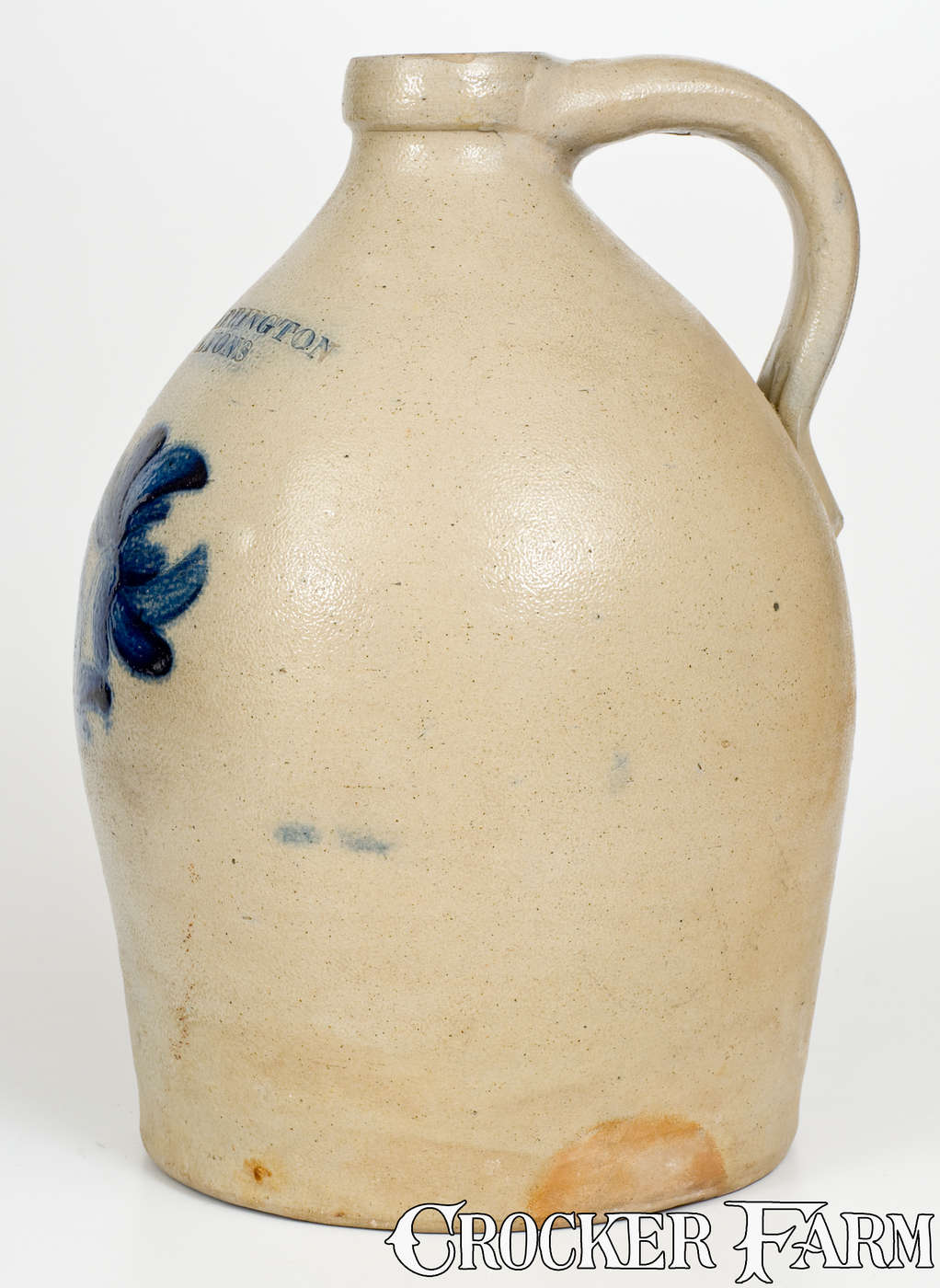 Two-Gallon T. HARRINGTON / LYONS, NY Stoneware Jug w/ Cobalt Floral Decoration