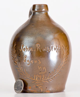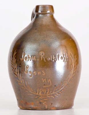 "John Rolhloff / Lyons / NY / 1892" Small-Sized New York Stoneware Presentation Jug