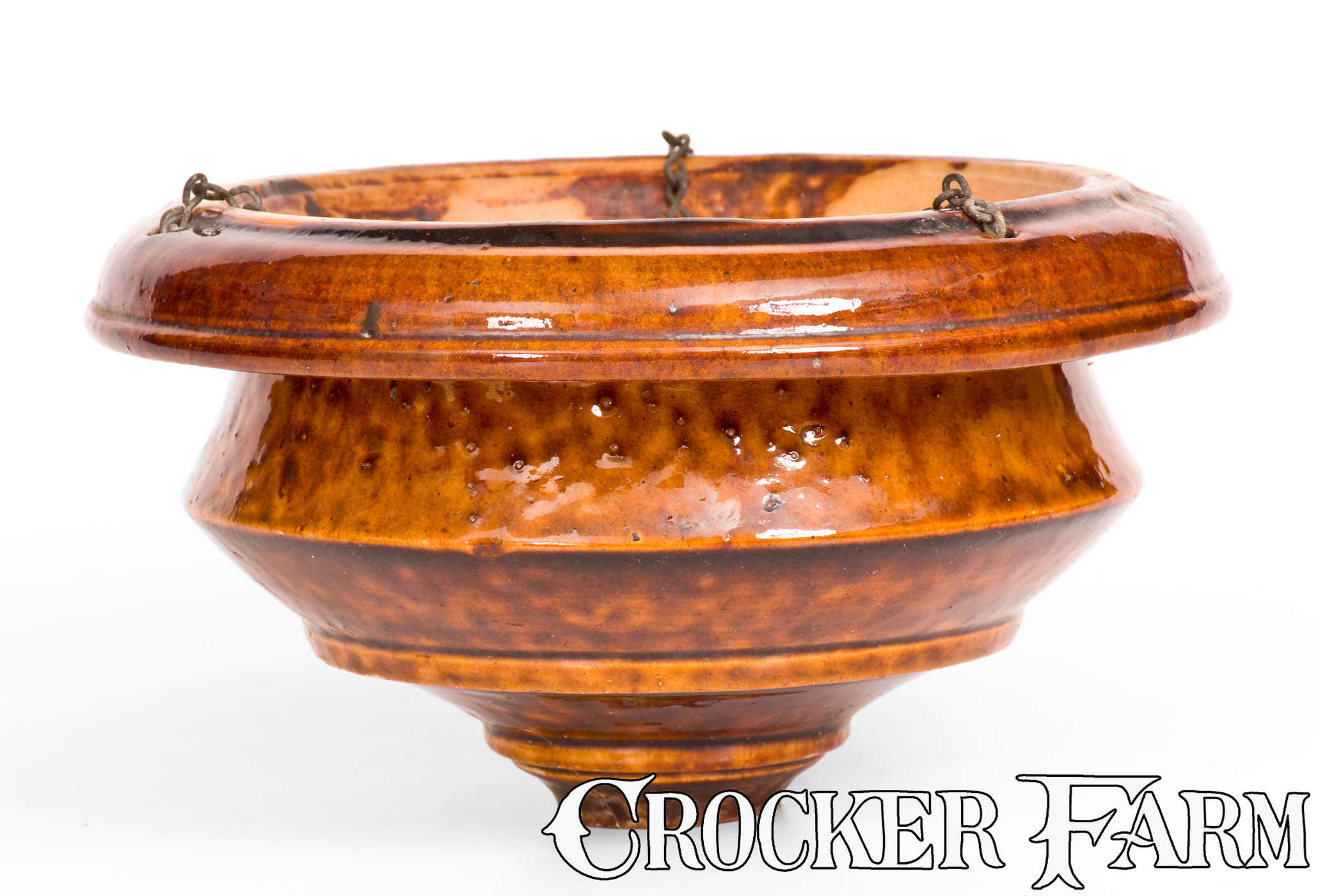 Rare Rockingham Hanging Planter Inscribed "George Godfrey," Norton Family, Bennington, Vermont