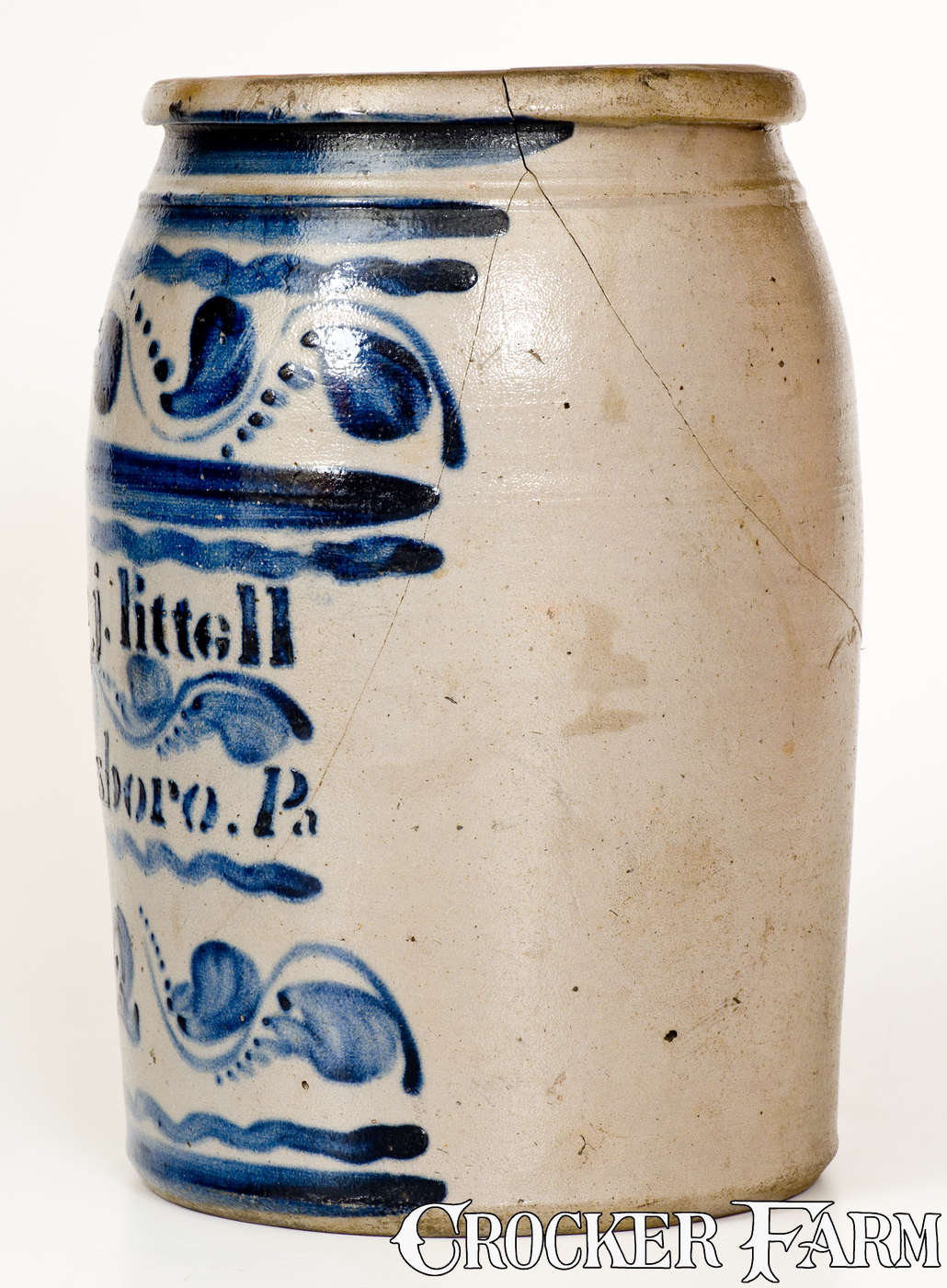 Exceptional J. Littell / Greensboro, PA Stoneware Jar w/ Profuse Freehand Cobalt Decoration