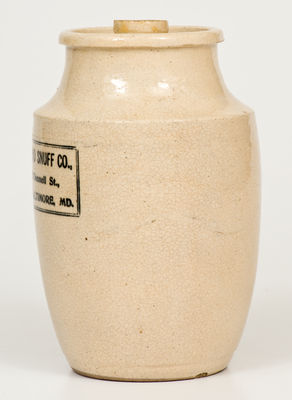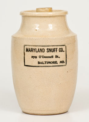 "MARYLAND SNUFF CO." Lidded Stoneware Tobacco Jar, circa 1900
