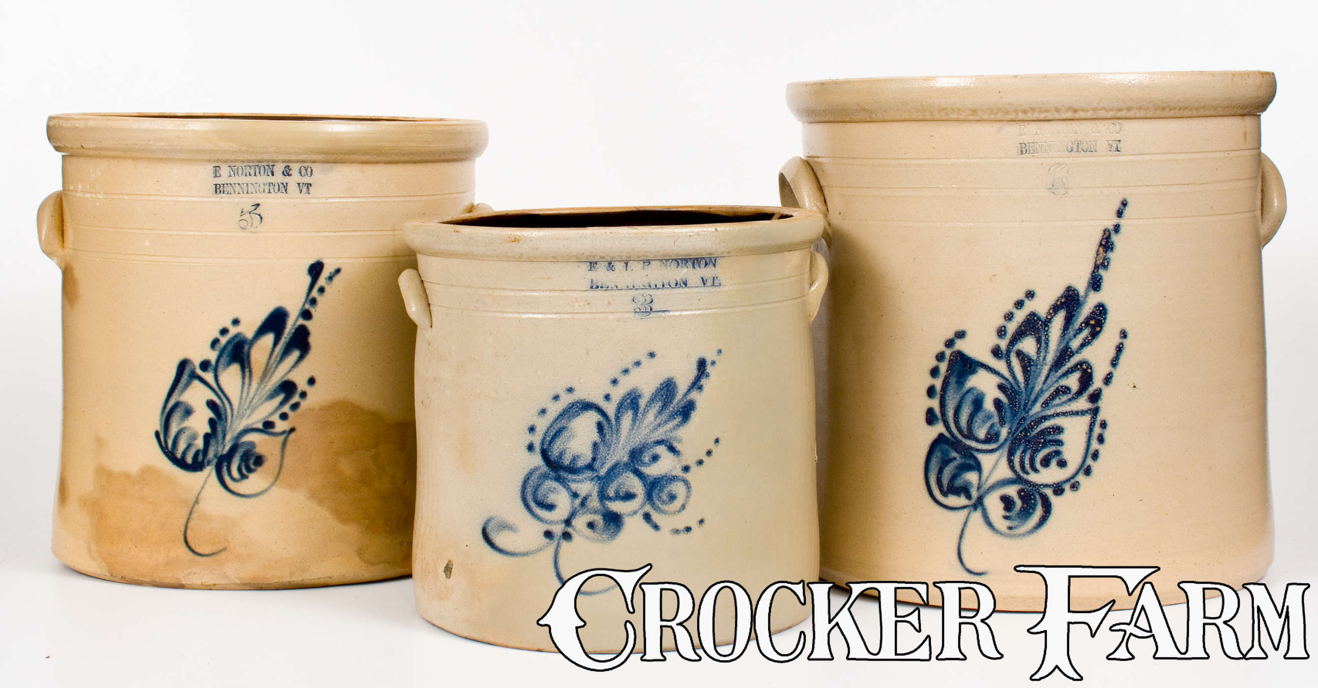 Lot of Three: NORTON / BENNINGTON, VT Stoneware Crocks w/ Floral Decoration