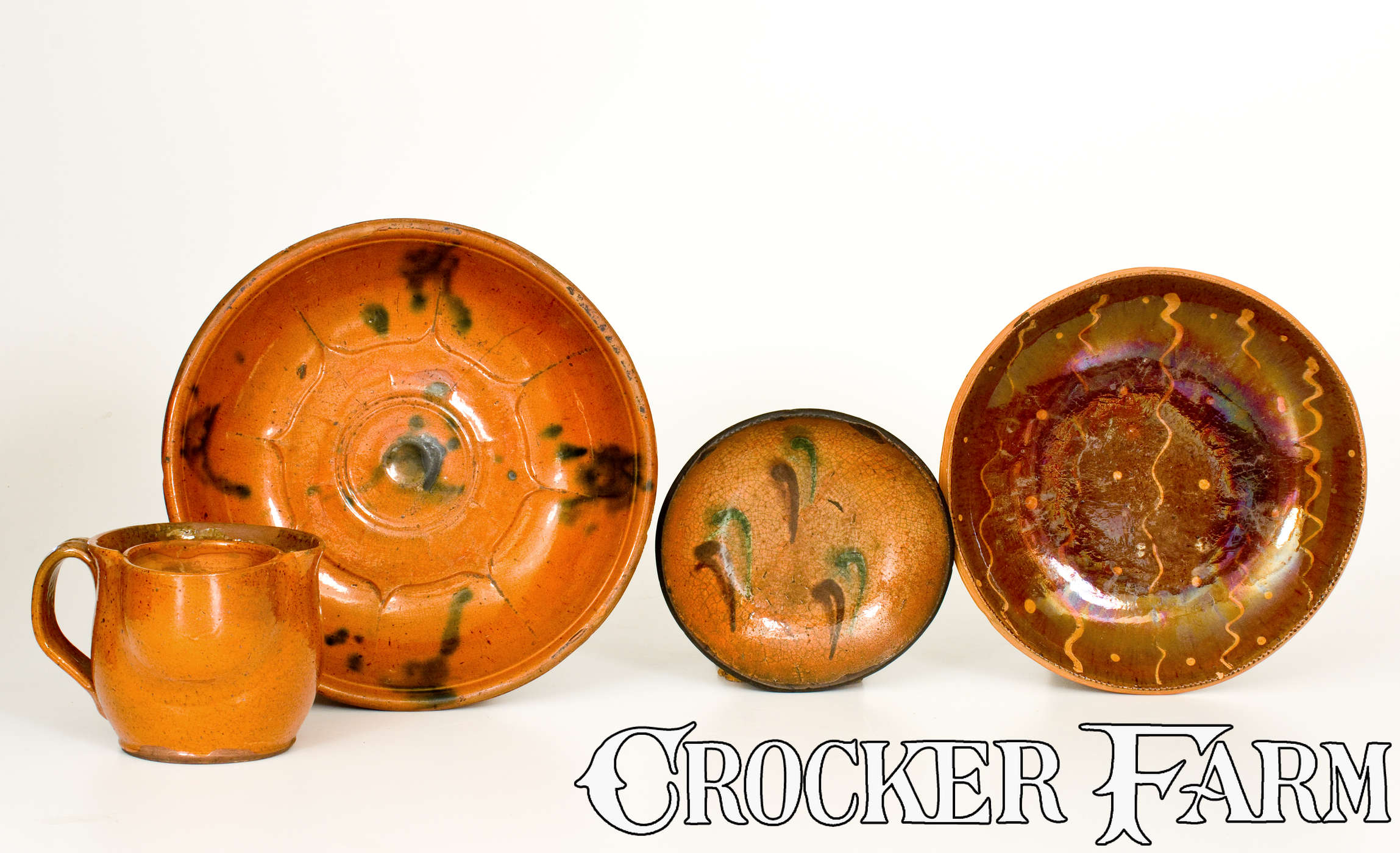 Lot of Four: Redware Shaving Mug, Bowl, and Two Plates incl. Stahl Pottery Example