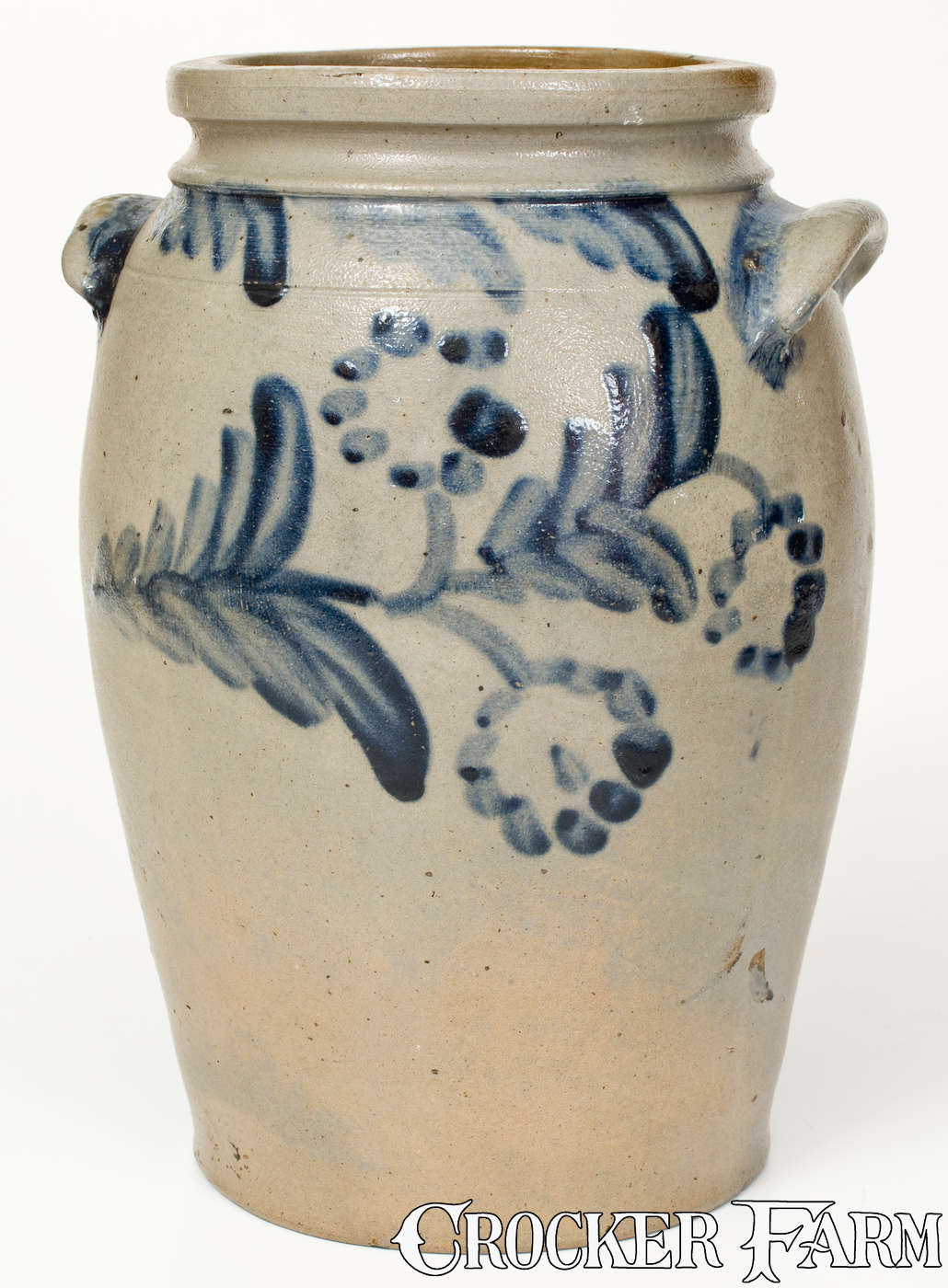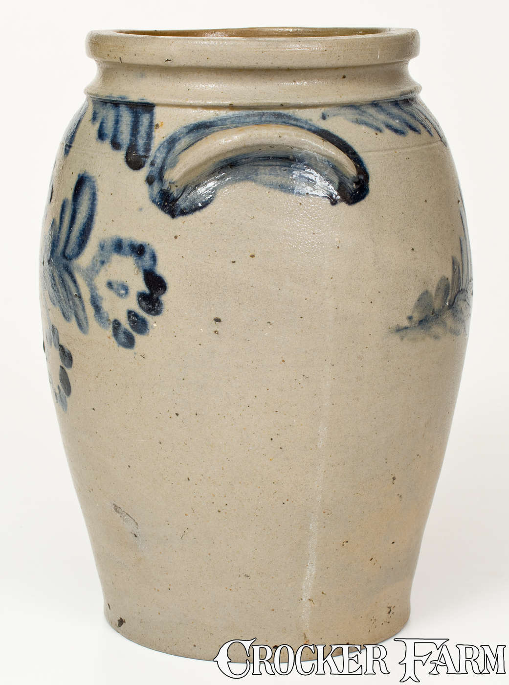 One-Gallon Baltimore, MD Stoneware Jar w/ Cobalt Floral Decoration, c1830