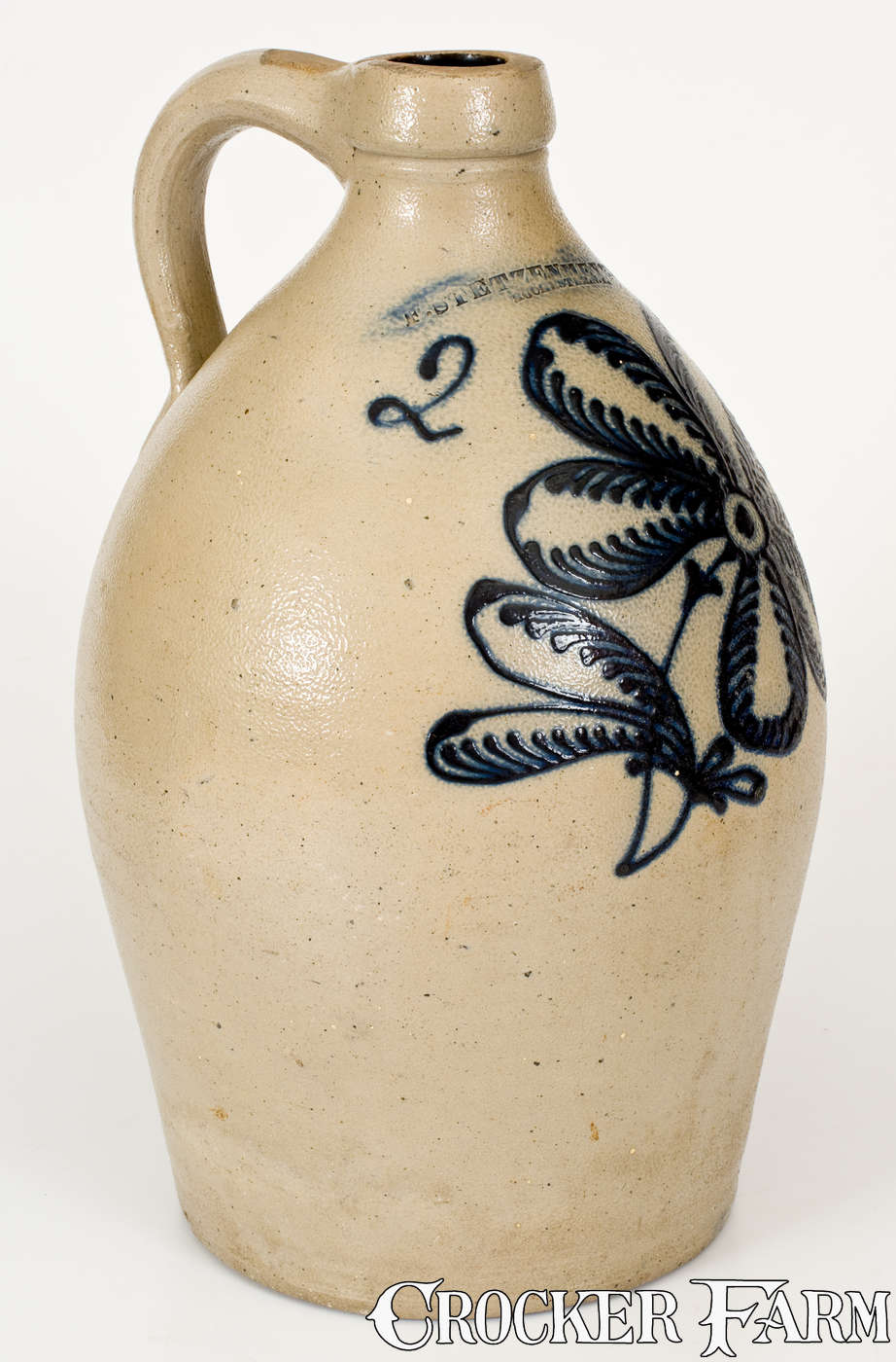 Fine F. STETZENMEYER / ROCHESTER, N.Y. Stoneware Jug w/ Large Cobalt Floral Decoration