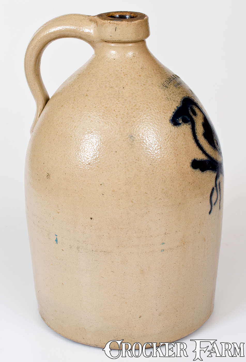 Two-Gallon O.L. & A.K. BALLARD. / BURLINGTON. VT Stoneware Jug w/ Large Cobalt Bird