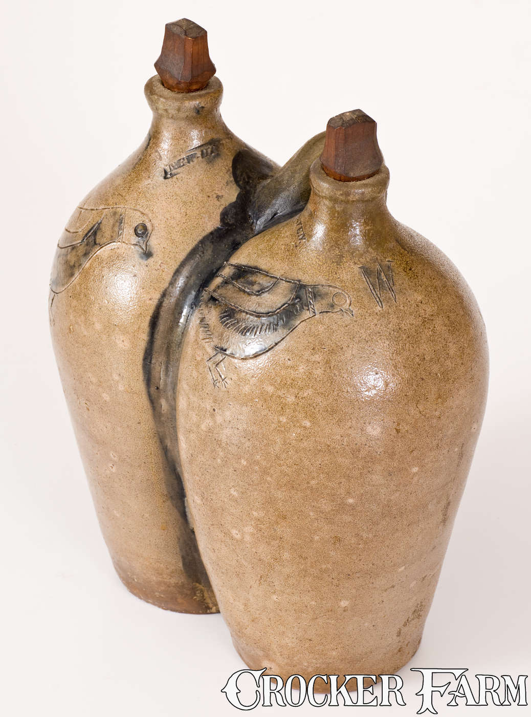 Very Rare NEW HAVEN, Connecticut Stoneware Gemel w/ Incised Birds