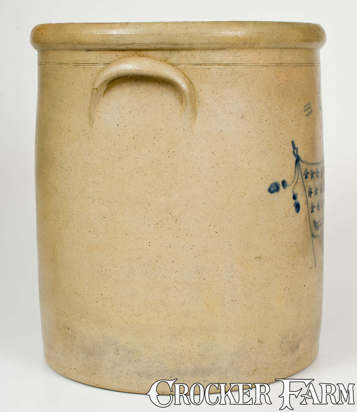 Rare Six-Gallon Ohio Stoneware Crock w/ Cobalt American Flag Decoration