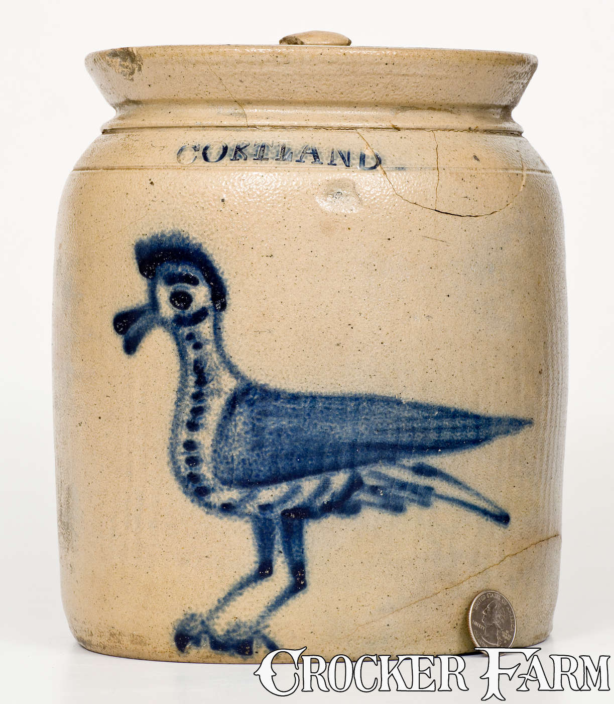 Scarce CORTLAND, New York Stoneware Jar w/ Cobalt "Goony Bird" Decoration