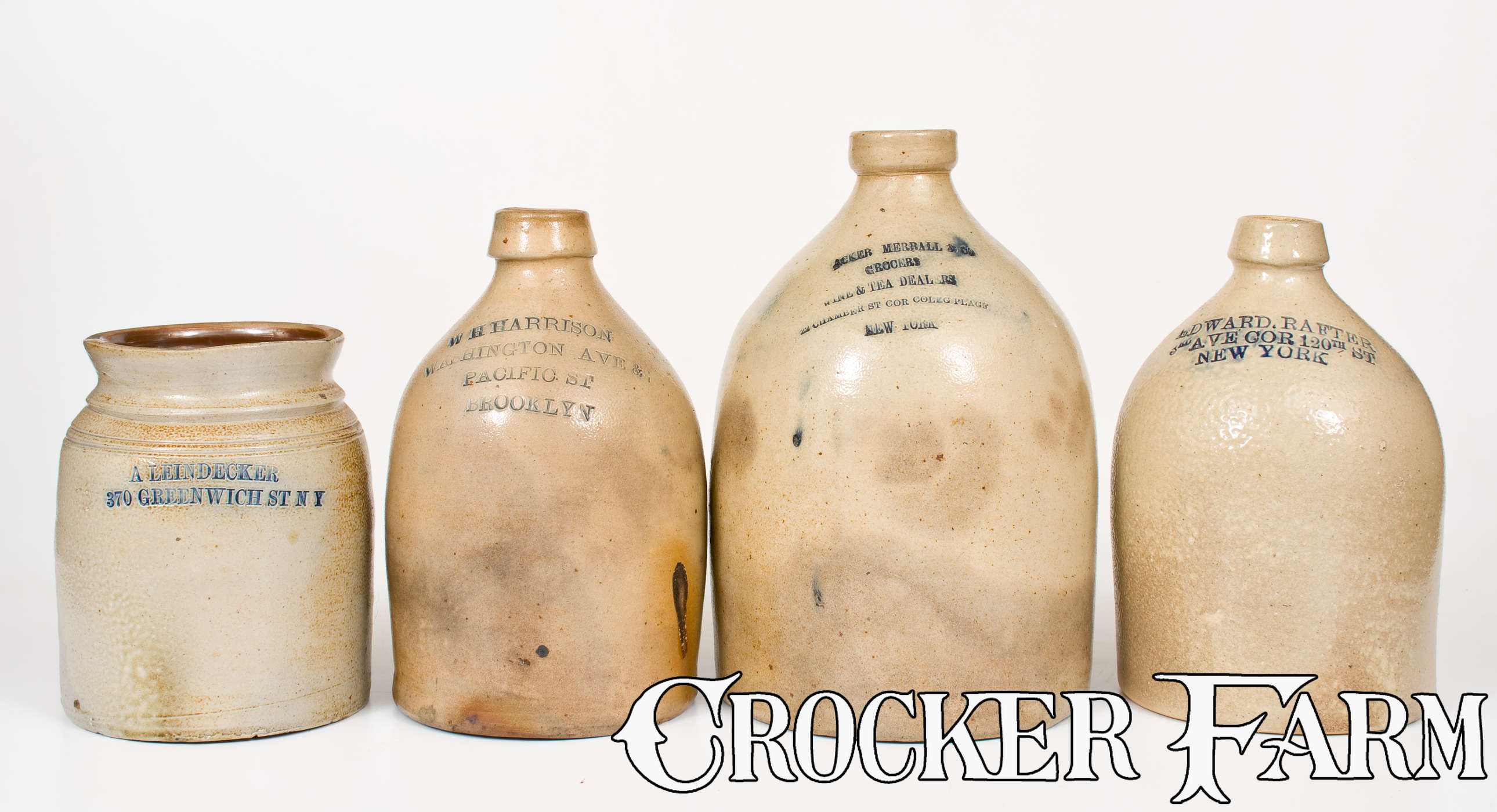Lot of Four: Small-Sized Stoneware Jugs and Jar w/ Impressed NEW YORK CITY Advertising