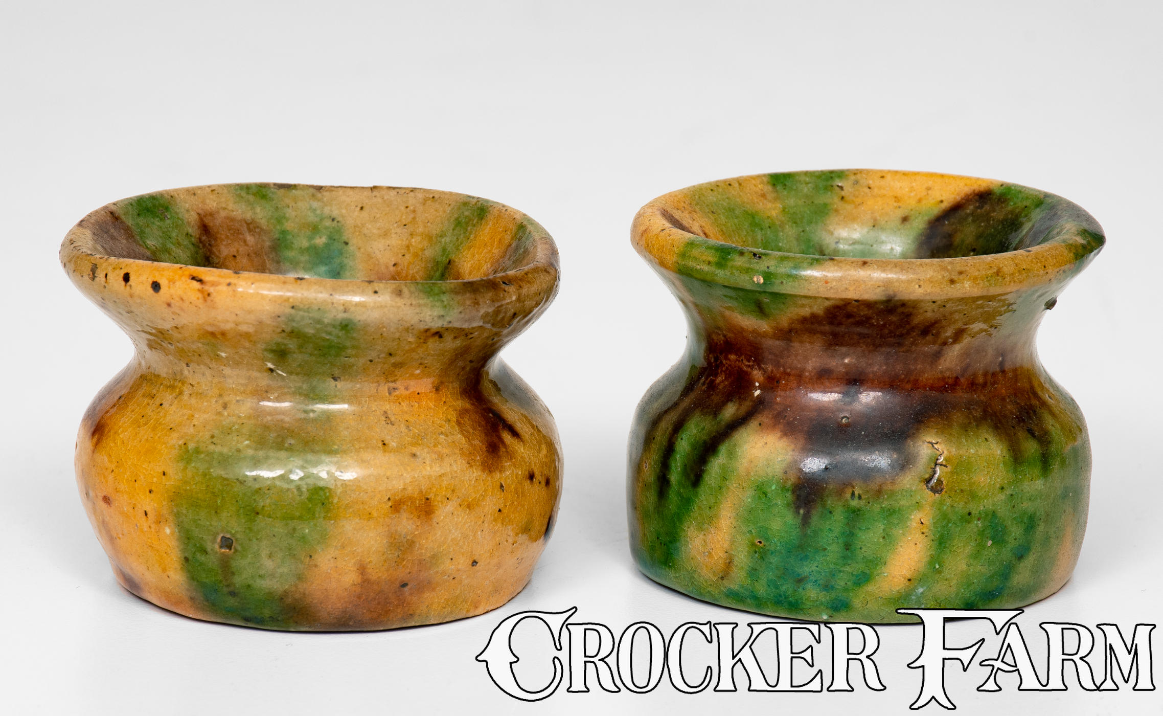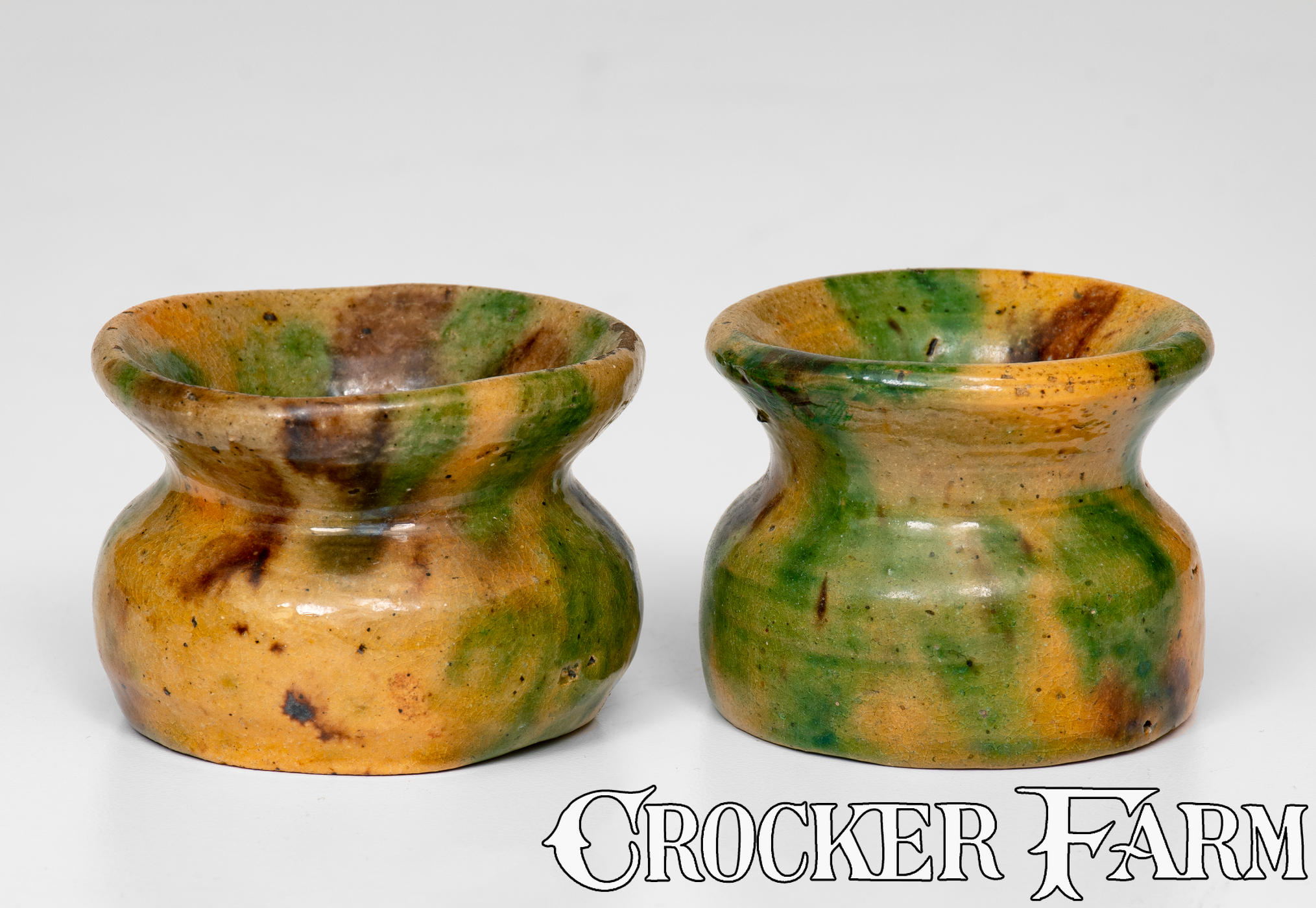 Lot of Two: Miniature Glazed Redware Cuspidors attrib. George Wagner, Lehighton, PA