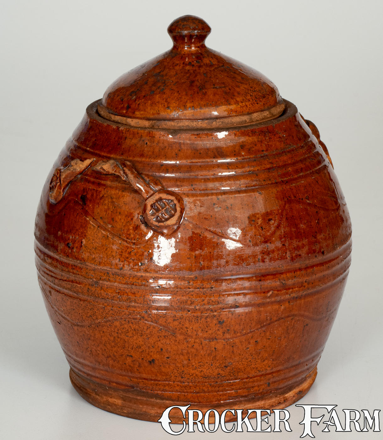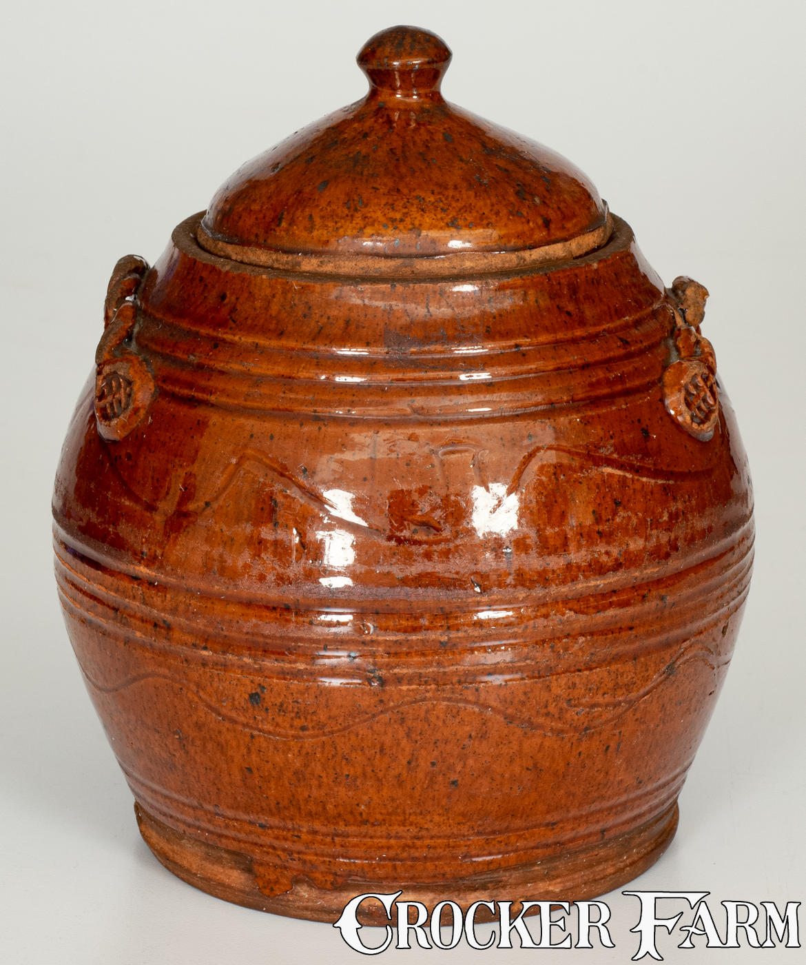 Rope-Handled Redware Lidded Jar, probably Chester County, Pennsylvania