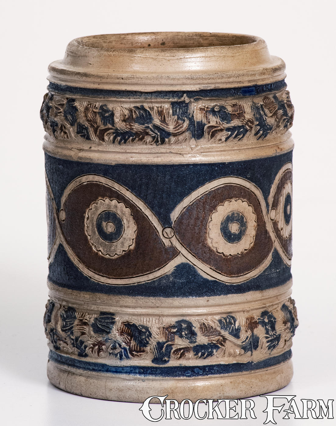 Westerwald Stoneware Mug with Two-Color Slip and Animal Decoration, circa 1690