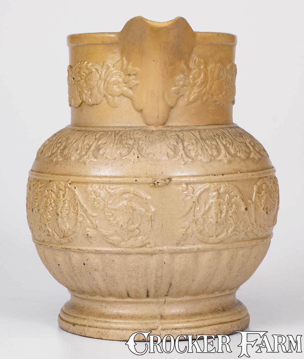 Rare D. & J. HENDERSON, Jersey City, NJ Molded Stoneware Pitcher