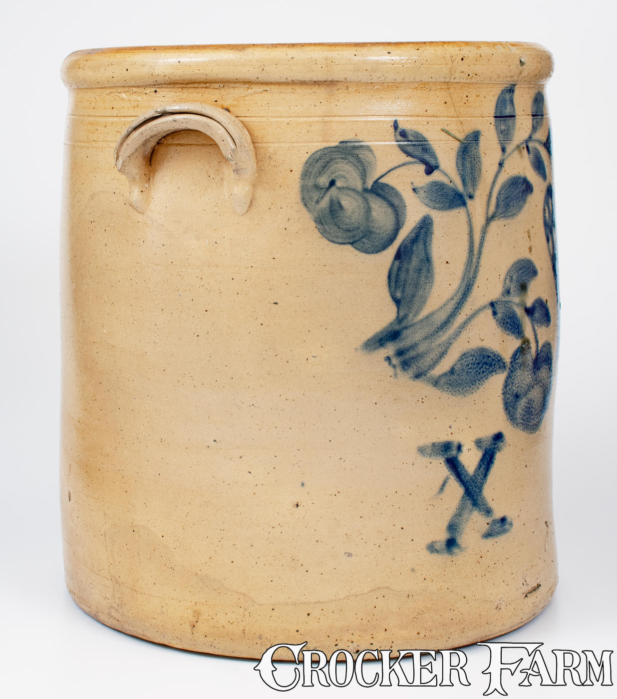 Very Fine 10 Gal. Ohio Stoneware Crock with Elaborate Floral Decoration